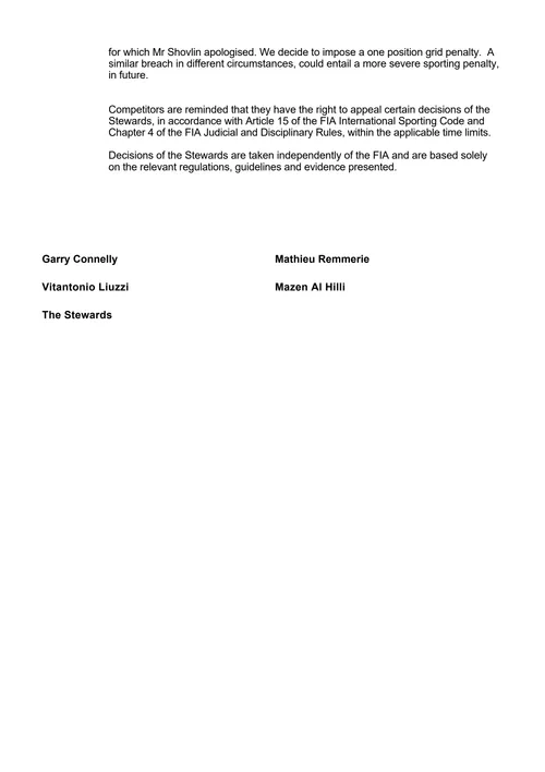 After, the stewards have decided to penalise both the Briton and the young Italian. Both drivers have received a one-place grid penalty.