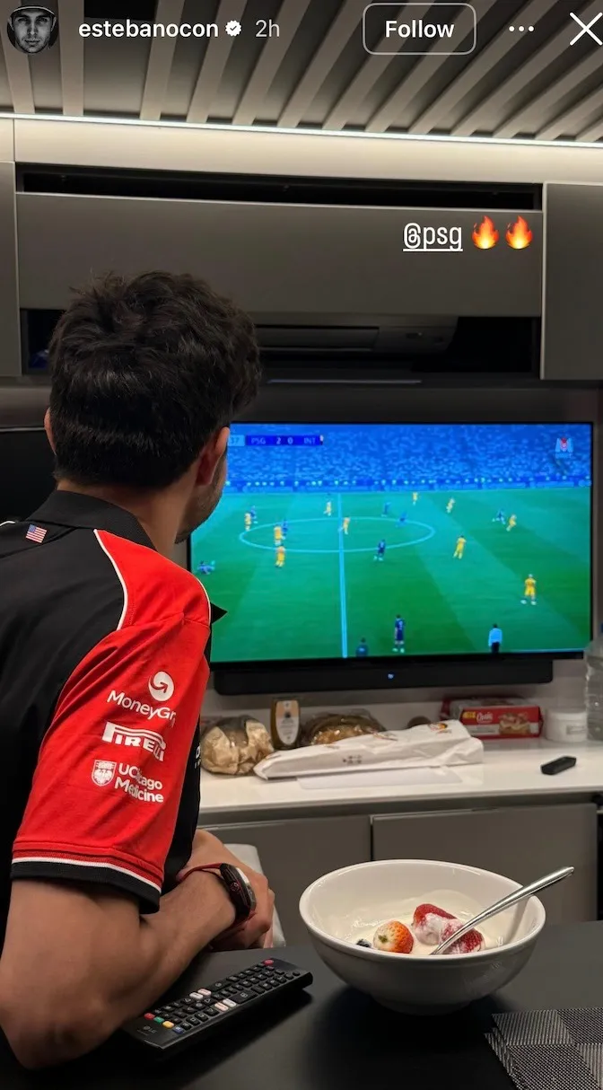 After qualifying, the French drivers must have been eager to get their debriefs done as quickly as possible at the Spanish Grand Prix. Pierre Gasly, Isack Hadjar and Esteban Ocon all watched the UEFA Champions League final, where their team PSG managed to score five past Inter in Munich. Gasly and Hadjar watch together in PSG gear, Ocon more relaxed in front of the TV