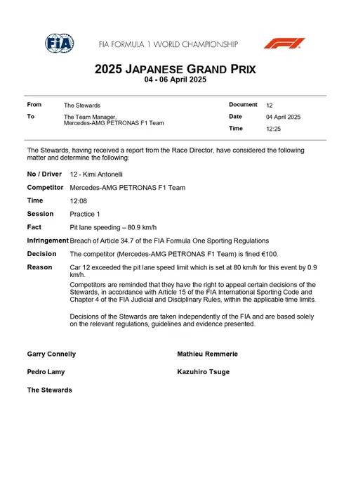 Andrea Kimi Antonelli has already had to visit the stewards at the Japanese Grand Prix after just one session, after he was found to have sped in the pitlane. The 18-year-old