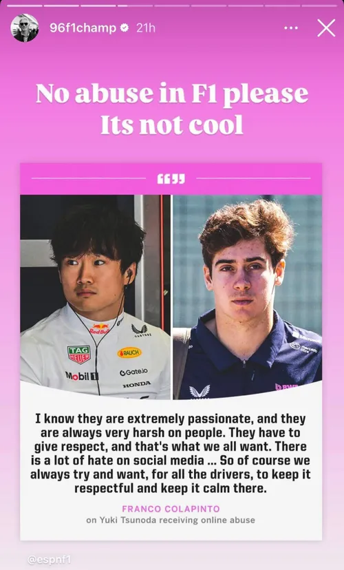 This is not the first time someone has had to speak out against online abuse, as Yuki Tsunoda has also had to speak out about the hate he has received lately.