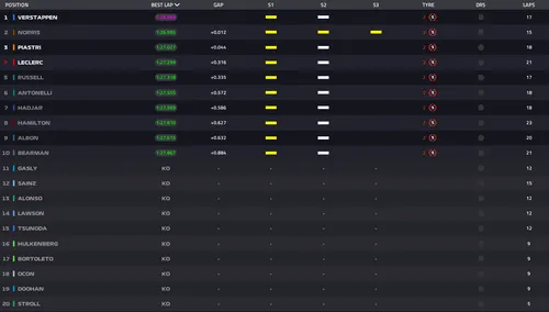 Behind the top three came the Ferrari of Charles Leclerc, just having enough to beat Geroge Russell in P5, while Russell's teammate Kimi Antonelli took a fine P6.