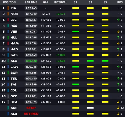 A late safety car as a result of Kimi Antonelli's retirement meant the Grand Prix was shaken up with seven laps to go, but Piastri held on in front of his teammate to increase his championship lead.