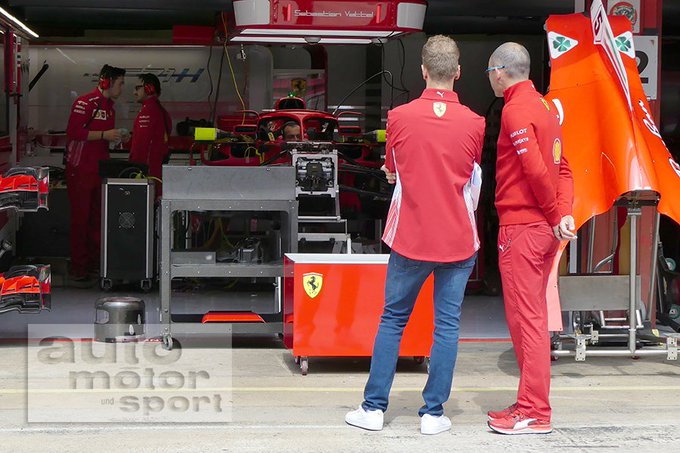 Sebastian Vettel taking a closer look at his new halo mounted mirrors. #AMuS