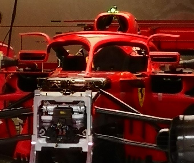 Ferrari with new mirrors, attached to the Halo! It was quite hard getting in or out of the car before, can imagine it now! 😬 Pic by @AlbertFabrega