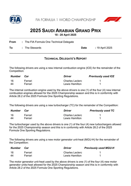 Lewis Hamilton will receive a new internal combustion engine, turbocharger, MGU-H, MGU-K and exhaust system.
