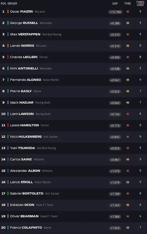 After finishing third in FP1, Hamilton only set the 11th fastest time in FP2. Charles Leclerc was the quicker Ferrari driver this afternoon, but his fastest time was half a second slower than Piastri's.