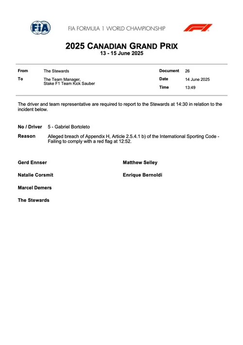 Now, both Tsunoda and Bortoleto are investigated for red flag infringement at the Circuit Gilles Villeneuve.