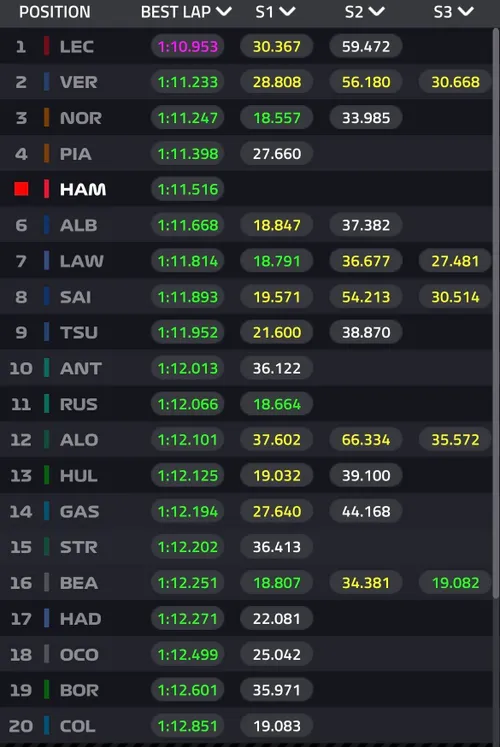 The fastest lap continously swapped between Leclerc, Verstappen and Norris. The session was mostly free of red flags until the last two minutes when Lewis Hamilton hit the barriers. That ended the session early.