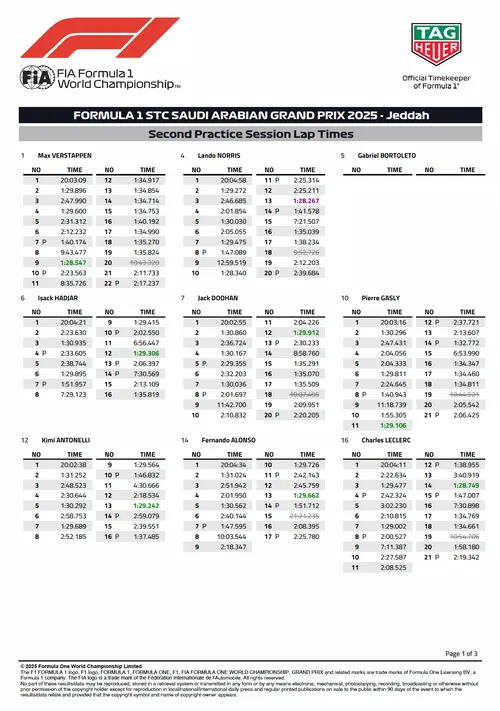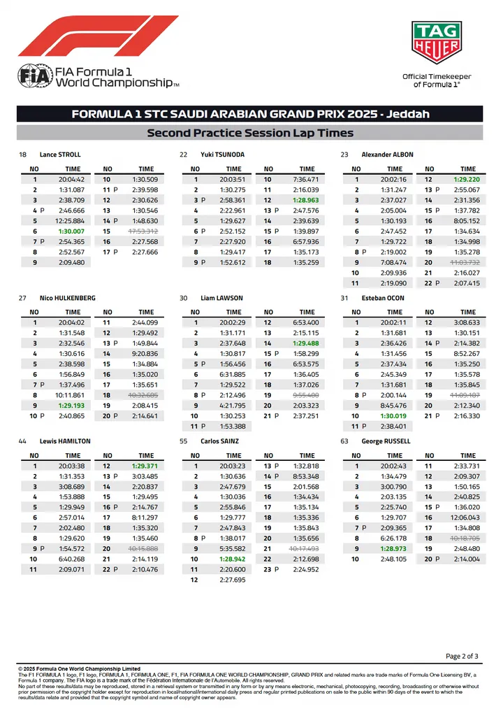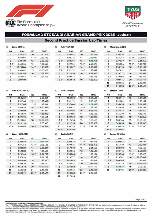 Lando Norris, due to Yuki Tsunoda's crash at the end of FP2, did not really have the chance to complete a longer run, but still topped the standings in FP2.