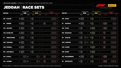 In regard to what tyres each driver has at their disposal for the Saudi Arabian Grand Prix, there is not much difference from the front team, apart from Norris.