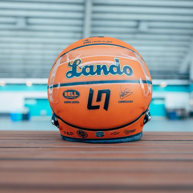 Miami Grand Prix, the Brit once again seems to have found the perfect head protection. We are looking at a basketball and it is fortunately almost the same colour as his car.