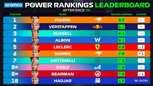 Piastri received the highest mark in this week's power rankings with a 9.2.