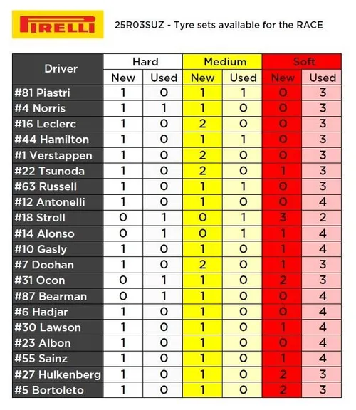 On the build up to the Japanese Grand Prix, F1's official tyre supplier has revealed what the best starting tyre will be for the mixed conditions race. The rain came down on the Suzuka Circuit earlier in the day, leaving the tarmac with damp patches all over. Should there be no more rain prior to the start, then when the lights go out, the grid will get off the line with dry tyres on.