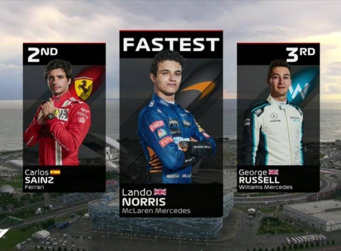 POLE POSITION VOOR @LANDONORRIS!!!! SAINZ P2, RUSSELL P3! 🥳🥳🥳 Wat een geweldige kwalificatie! Lewis Hamilton "slechts" P4! #RussianGP #LandoNorris #SochiGP