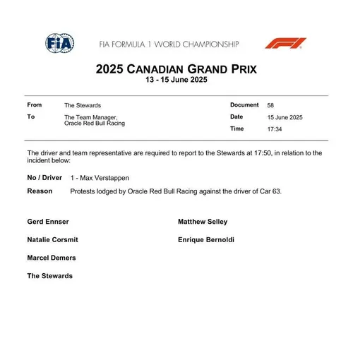 Verstappen en Russell moeten zich allebei melden bij de stewards na het protest van Red Bull Racing. Om 17:50 lokale tijd, 23:50 uur in Nederland, zullen de coureurs aanwezig moeten zijn om hun verhaal te doen.