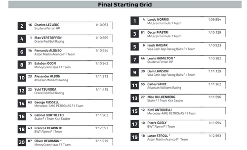 Achter Verstappen een verrassende naam: Isack Hadjar mag als rookie vanaf plek vijf in Monaco aanvangen. Lewis Hamilton was de laatste rookie die vanuit de top vijf de iconische wedstrijd startte. Fernando Alonso (zesde) en Esteban Ocon (achtste) hebben eveneens prima posities weten te bemachtigen tijdens de kwalificatie.