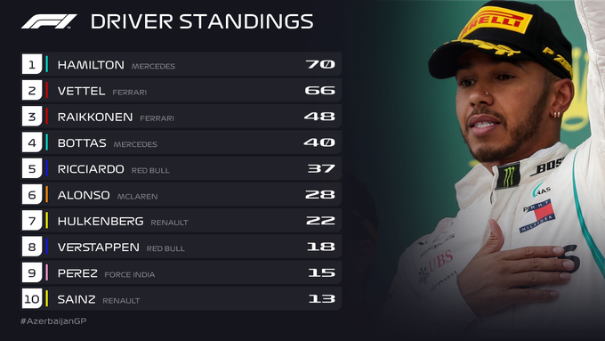Wederom een race in Baku die men niet snel zal vergeten. Red Bull zal de Grand Prix van Azerbeidzjan dit jaar wel zo snel mogelijk achter zich willen laten, terwijl Lewis Hamilton zijn geluk juist niet op kan. Na een uitermate spannende race ziet het er in het klassement weer interessant uit.