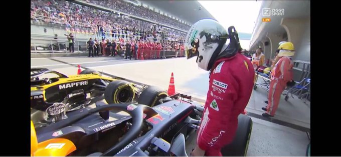 De voormalig Formule 1-coureur is nog niet met een uitspraak over de race van Max gekomen, maar zoals we kunnen verwachten, grapt Van Der Garde er weer flink op los op twitter. Nadat de race is afgelopen en Vettel langs de geparkeerde auto’s loopt, blijft de Duitser toch even staan bij de wagen van Verstappen. 'Hello darkness my old friend, I’ve come to talk with you again…’
