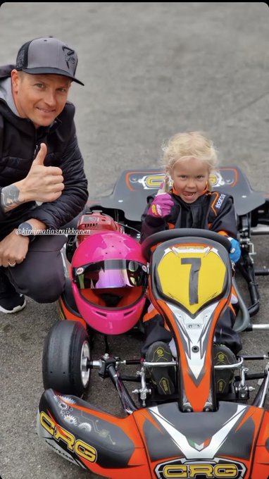 Formule 1-carrière beëindigde. De Fin geniet volop van zijn rust met zijn familie. Op Instagram deelt vrouw Minttu beelden van hun dochter Rianna, die in de voetsporen van haar vader lijkt te treden. Een glimlachende Raikkonen moedigt haar aan op de kartbaan.