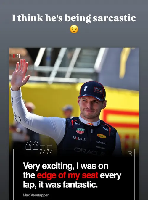 Volgens Hill was Verstappen (waarschijnlijk) niet de enige die sarcastisch was. Even later zette de Brit ook een foto online, met daarin een quote van