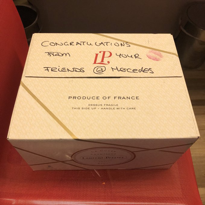Waarschijnlijk hadden de Zilveren Pijlen een pallet van die flessen paraat staan bij het Duitse raceweekend, maar toch. Voor de ander zal zulke erkenning zeker niet bitter smaken.