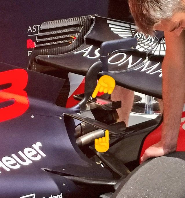 Het is natuurlijk nog maar de vraag of dit onderdeel daadwerkelijk de kwalificatie- en racespecificatie haalt van de wagen, maar desalniettemin is het een opvallende toevoeging, voorafgaand aan kansrijk weekend voor de renstal van de energiedrankfabrikant.