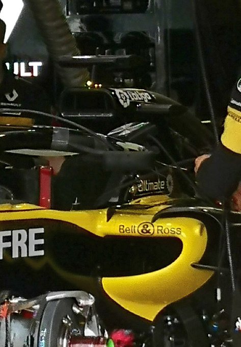Renault voor de aankomende Grand Prix ook de spiegel op de halo heeft gemonteerd. Het ontwerp is echter iets anders, gezien de spiegel met een rechte constructie aan de halo vast lijken te zitten. Bij