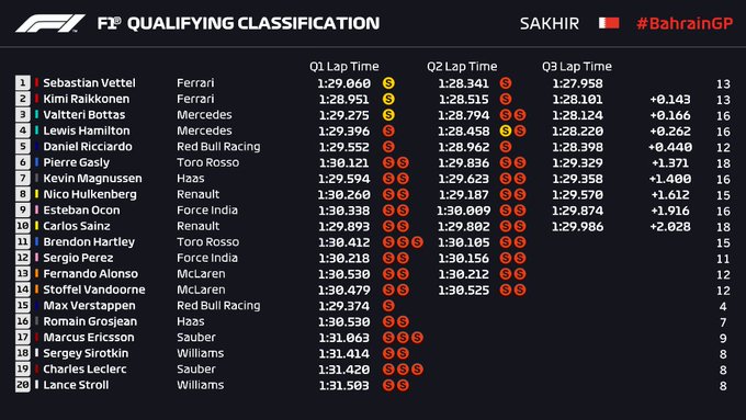 In de tweede run verbeterde bijna iedereen zich en werd het nog erg spannend. Uiteindelijk wist Vettel de pole te veroveren op Raikkonen. Bottas pakte plek drie en Ricciardo strandde op P5.
