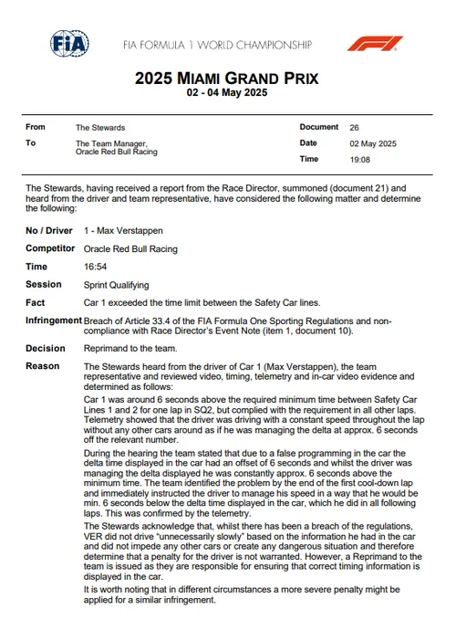 Miami. De Nederlander van Red Bull Racing werd na de sessie opgeroepen om tekst