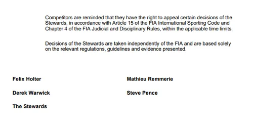 lezen in het document van de stewards na afloop van de sessie in Miami.