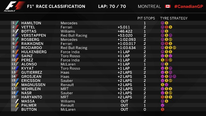 Formula 1@F1·FollowPROVISIONAL CLASSIFICATION Here's how it finished at the #CanadianGP 🇨🇦 7:41 PM · Jun 12, 2016919ReplyCopy linkRead 23 replies