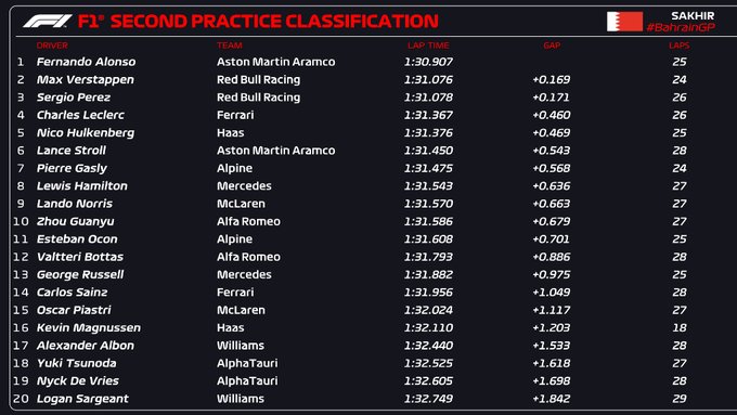 De vrijdag van de Grand Prix van Bahrein 2023 zit erop. Torenhoge favoriet en tweevoudig wereldkampioen