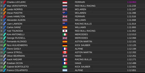 Pas laat in de sessie ging Verstappen naar de zachte band, maar daarmee gleed hij in de laatste sector van de ronde. Zijn snelste tijd wist Verstappen niet te verbeteren met de C6. Ondertussen beten ook de concurrenten hun tanden stuk op de tijd van Verstappen. Pas in de laatste minuten ging Charles Leclerc net onder de tijd van Verstappen door. In zijn volgende snelle ronde vergrootte de Monegask de marge naar twee tienden.