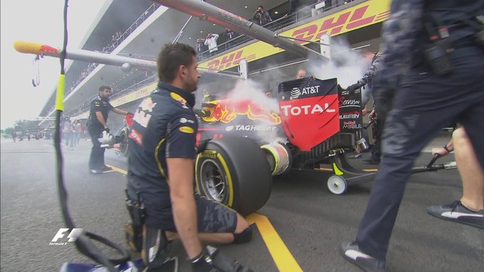 Is @Max33Verstappen's #FP1 over? Overheating rear brakes have @redbullracing mechanics scrambling #MexicoGP 🇲🇽 #F1