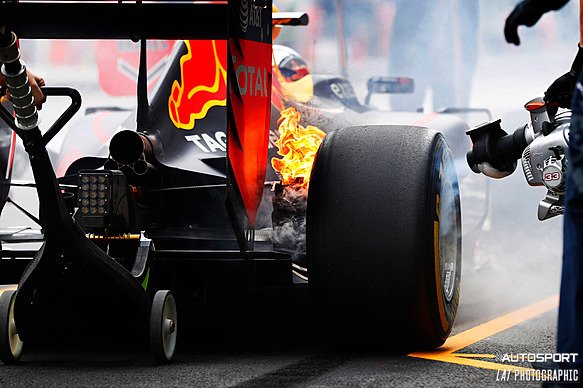 Max Verstappen's flaming brakes, caught by @latphotographic #F1 #MexicoGP