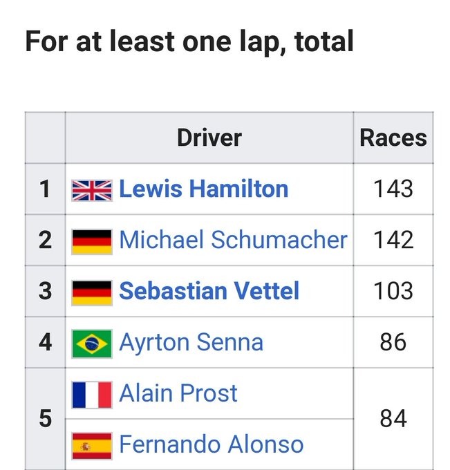 Today @LewisHamilton broke Michael Schumacher's record of most races led for at least one lap. Are you (still) not entertained? #Formula1 #TeamLH